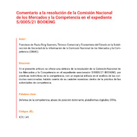En el presente artículo se ofrece una síntesis de la resolución de la Comisión Nacional de los Mercados y la Competencia en el expediente sancionador S/0005/21 BOOKING, por prácticas restrictivas de la competencia, con un especial énfasis en el análisis de las conductas sancionadas, habida cuenta de su carácter novedoso dentro de la práctica de las autoridades de competencia.