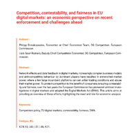 Los efectos de red y la retroalimentación de datos en los mercados digitales, los modelos de negocio cada vez más complejos y las conductas anticompetitivas de los actores dominantes han dado lugar a un poder de mercado consolidado, en el que unas pocas plataformas incumbentes pueden imponer condiciones comerciales injustas y abusar de su posición de mercado. Para proteger la competencia en beneficio de los consumidores, garantizando la contestabilidad y la equidad, en los últimos años la Comisión Europea ha liderado investigaciones antimonopolio en los mercados digitales y ha adoptado el Reglamento de Mercados Digitales (DMA). Este artículo tiene como objetivo ofrecer una visión general de estos esfuerzos, destacando la necesidad y el papel del análisis económico.