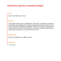 El documento examina cómo la digitalización, el Big Data y la inteligencia artificial han transformado las estrategias de las empresas, generando economías de escala y efectos de red que favorecen la dominancia de BigTech. Proporciona un marco conceptual para el análisis, aborda las tensiones entre los objetivos de eficiencia, estabilidad y privacidad, y los desafíos para los reguladores y autoridades de competencia.